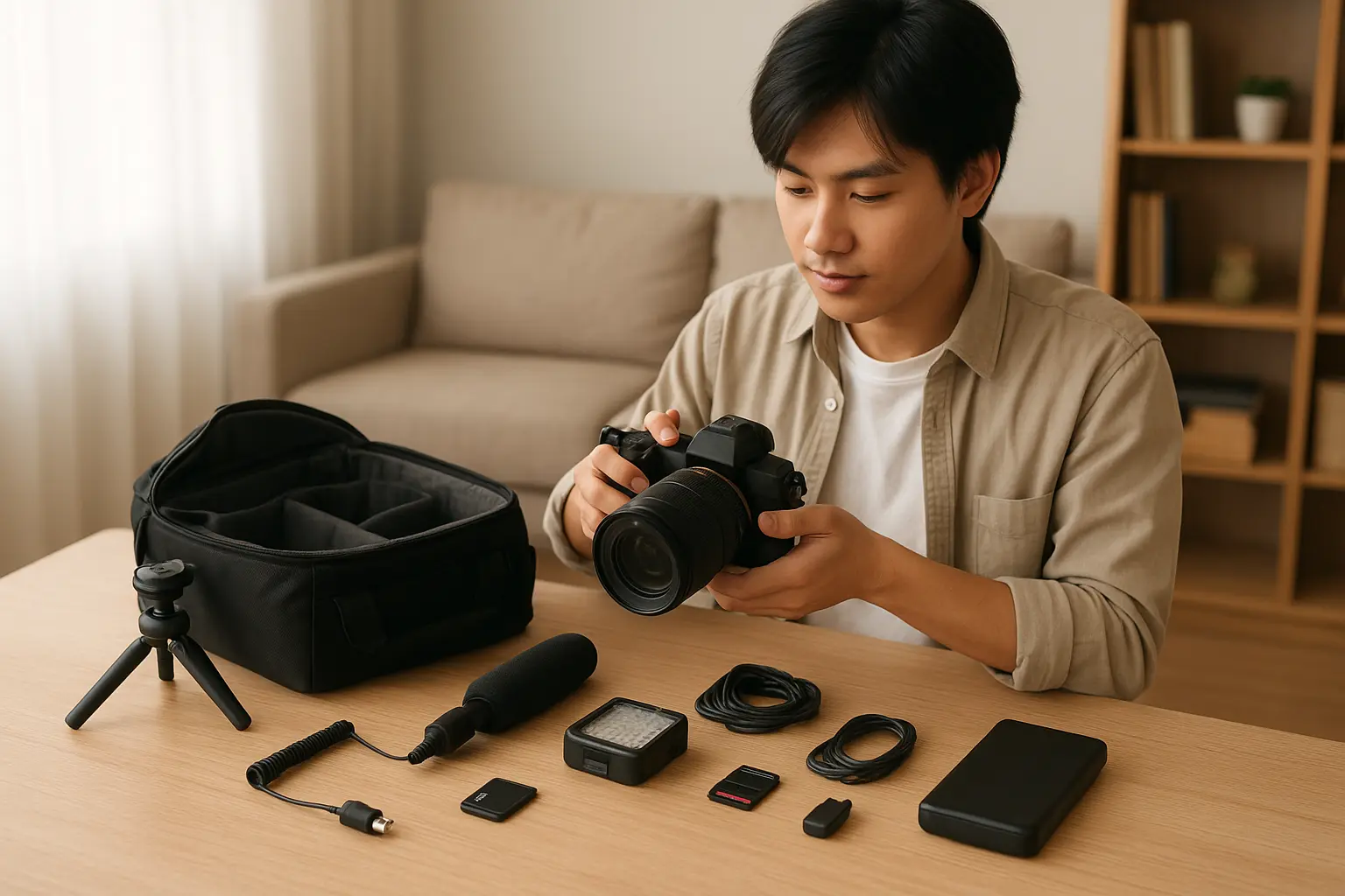 You don’t need to buy everything at once—start with the basics (memory card, tripod, microphone), then upgrade as you grow.
